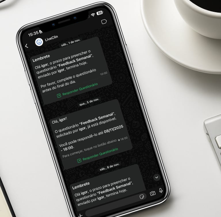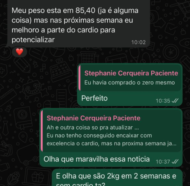 Com base nos seus resultados, eu intervenho na estratégia. Se o corpo sinaliza estagnação, nós recalculamos a rota imediatamente via WhatsApp.